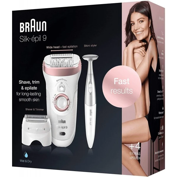 - High frequency massage cap – The new Silk-épil 9 comes with a massage cap to help reduce the sensation of pain, so you can experience an extra gentle epilation.