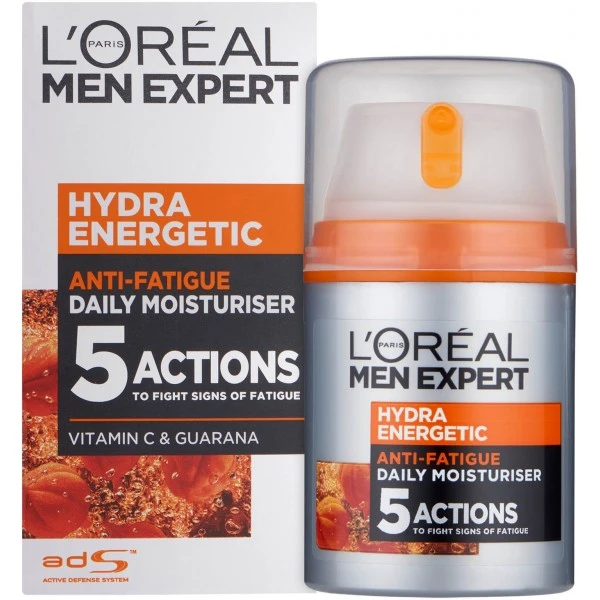 - After cleansing, apply a small amount of L’Oréal Men Expert Hydra Energetic Daily Anti-Fatigue Moisturising Lotion to your face and neck.