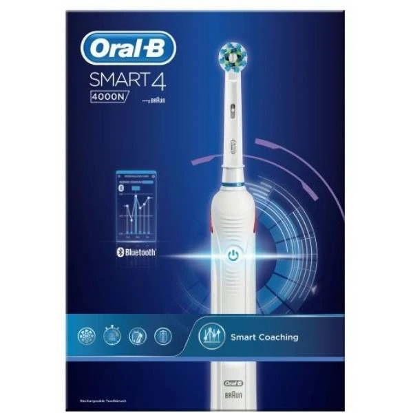 Experience Oral-B Smart 4, from the brand that brought you the first ever connected rechargeable toothbrush. The sleek white handle of the 4000N electric toothbrush improves your brushing habits. It seamlessly connects with the Oral-B app in your phone and guides you with real time feedback to brush better. While you are improving your brushing routine, Oral-B’s unique round head does all the rest. It removes up to 100% more plaque than a standard manual toothbrush for healthier gums and it starts making your smile whiter as of the first day of brushing by removing surface stains. Not only this, but the toothbrush helps you protect your delicate gums with the proprietary pressure control technology that reduces brushing speed and alerts you to be gentler if you brush too hard. With the Smart Coaching you get from Oral-B Smart 4, 4000N toothbrush, you will improve your brushing habits and your oral health. No wonder Oral-B is the N1 recommended brand by dentists worldwide.