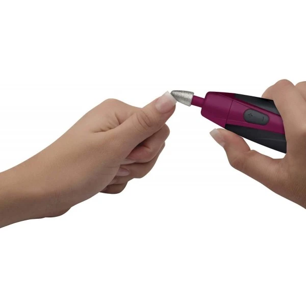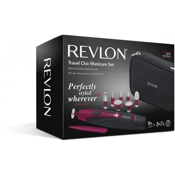 A compact and portable rechargeable manicure set by Revlon, providing you with the freedom to achieve the perfect manicure wherever you go. This manicure set comes in a convenient pouch with 9 attachment, ideal for travelling with double voltage. Adapt the speed to suit the skin (hand or foot) and the nail thickness, by selecting one of the five available speeds.