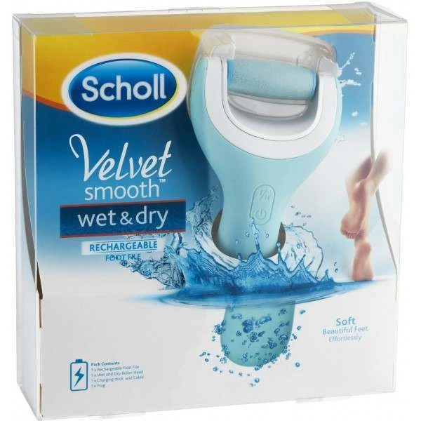 New Scholl Velvet Smooth Wet & Dry is cordless and rechargeable. It is suitable for both dry and wet use, such as in the shower or bath. Thanks to the specially developed roller head, you get rid of excessive hard skin after use. With the two speed settings, you create a personal routine to remove coughing in an efficient and gentle way.